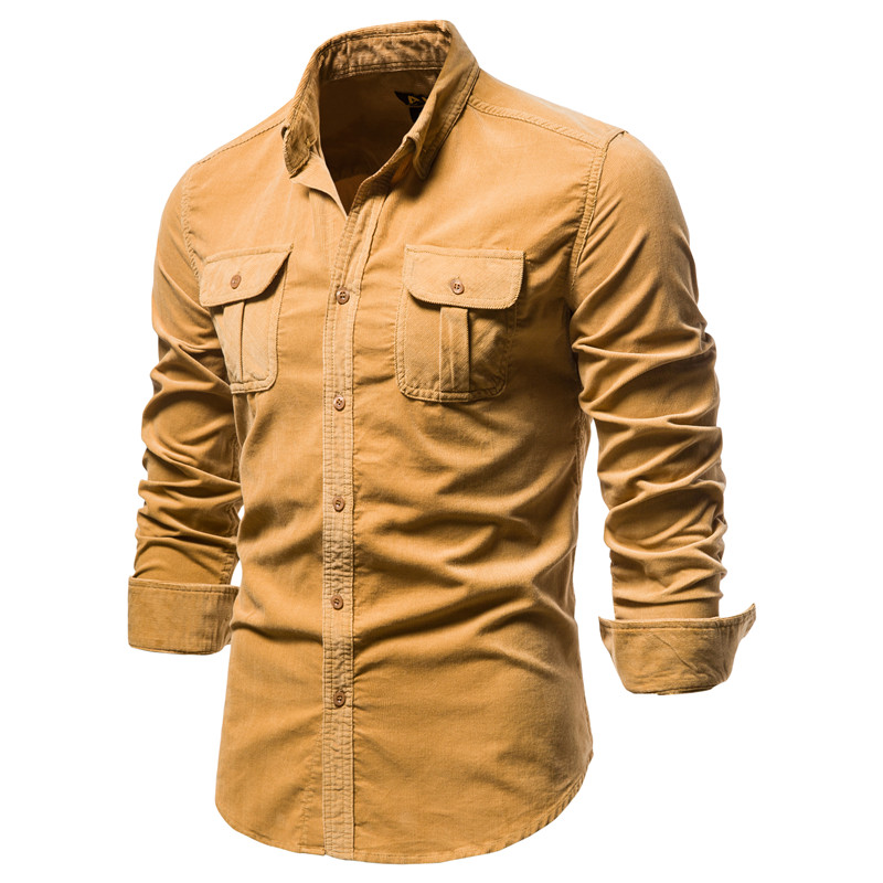 2021 New Single Breasted 100% Cotton Men's Shirt Business Casual Fashion Solid Color Corduroy Men Shirts Autumn Slim Shirt Men