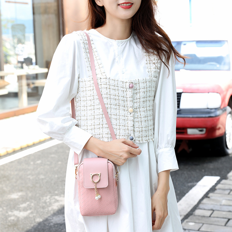 - 2021 Spring Summer Mini Cross-body Mobile Phone Shoulder Bag Woven Pearl Tassel Cover-style Female Bag Shoulder Diagonal Bag