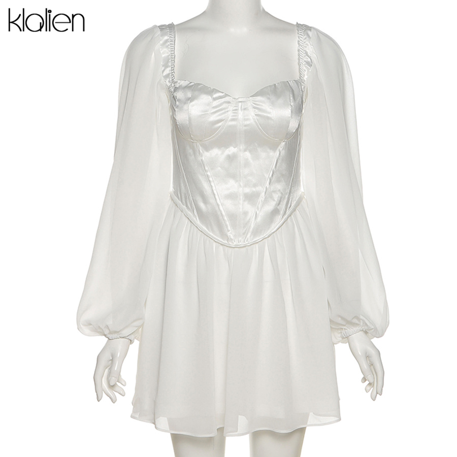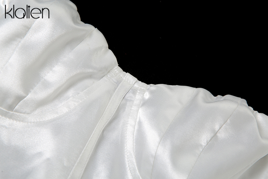 KLALIEN Women Fashion Elegant High Waist Slim Solid White Office Lady A-Line Mini Dress 2022 Spring Autumn New Women Party Dress