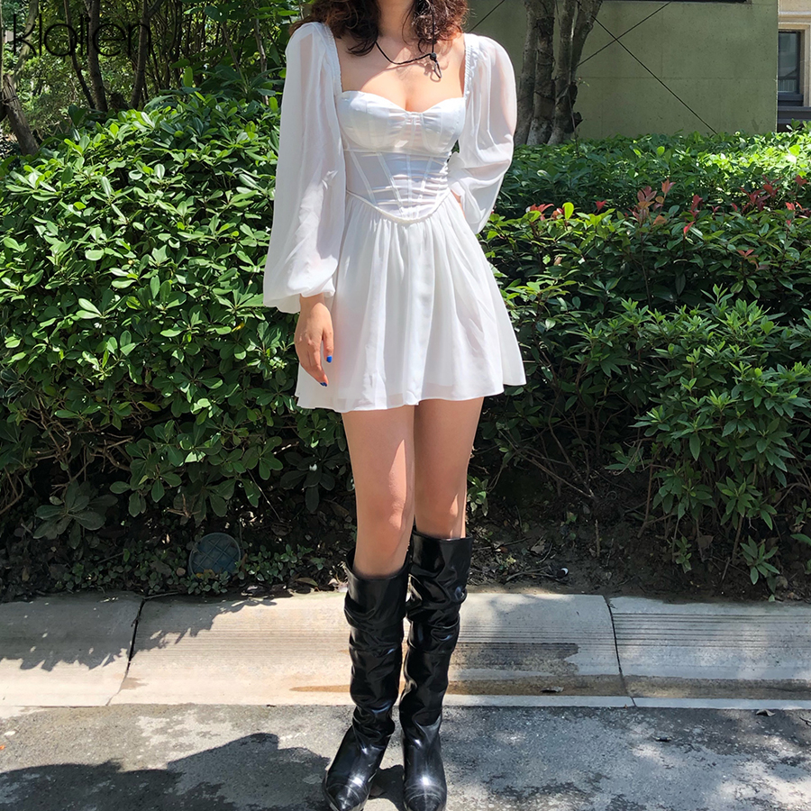 7 reviews for KLALIEN Women Fashion Elegant High Waist Slim Solid White Office Lady A-Line Mini Dress 2022 Spring Autumn New Women Party Dress