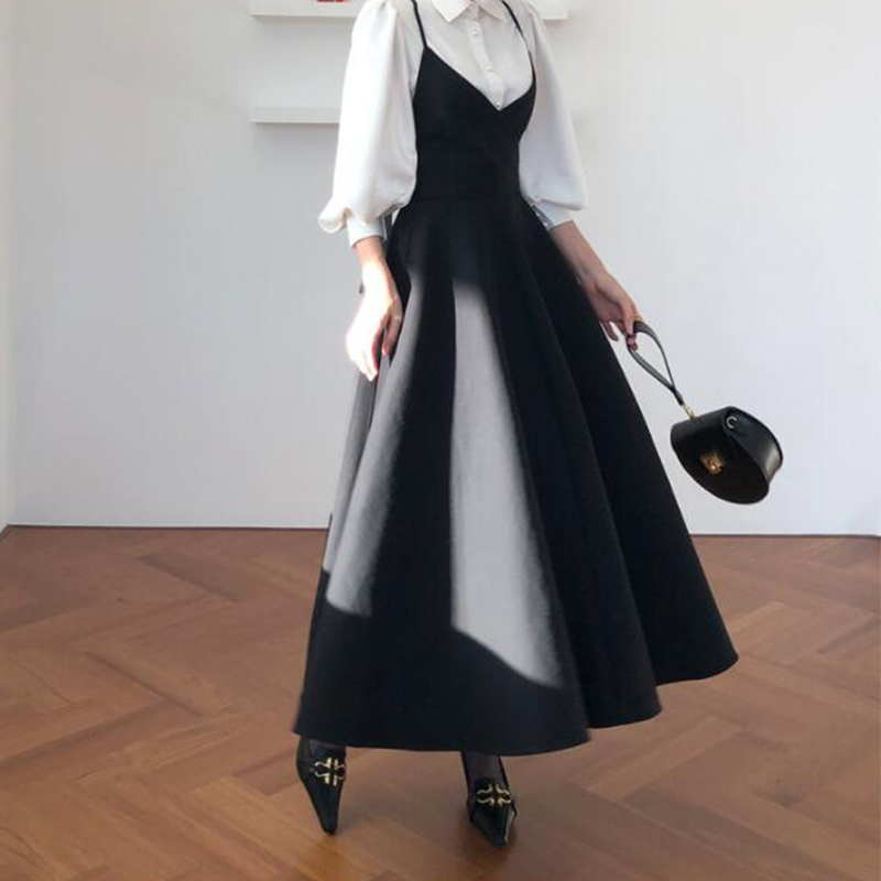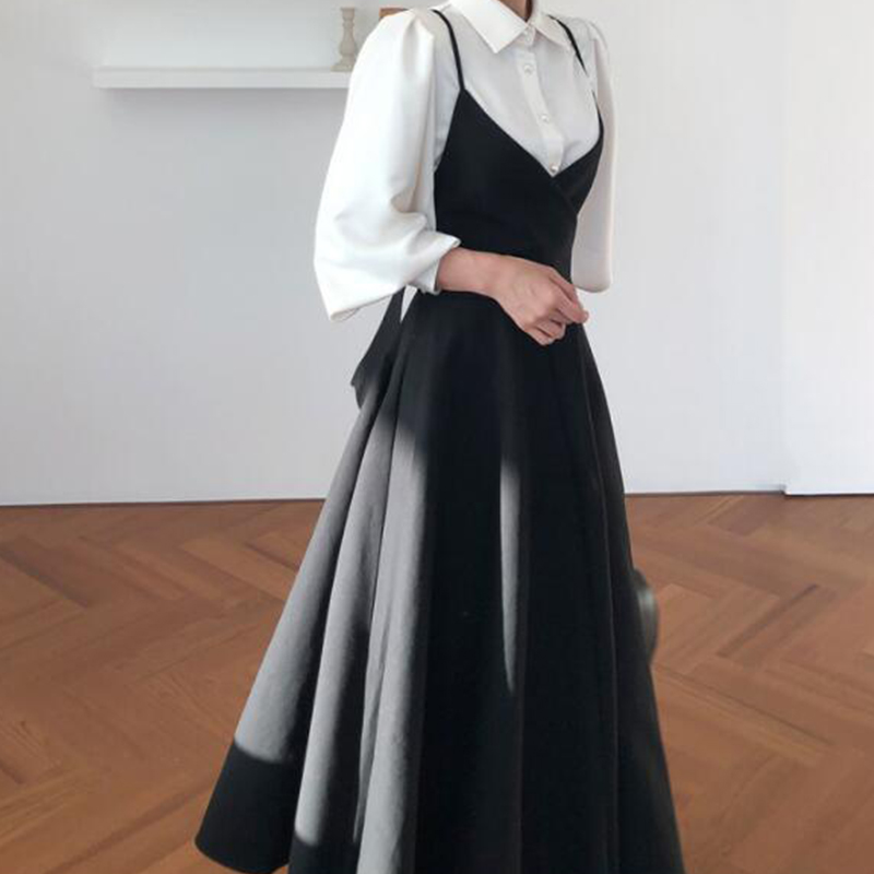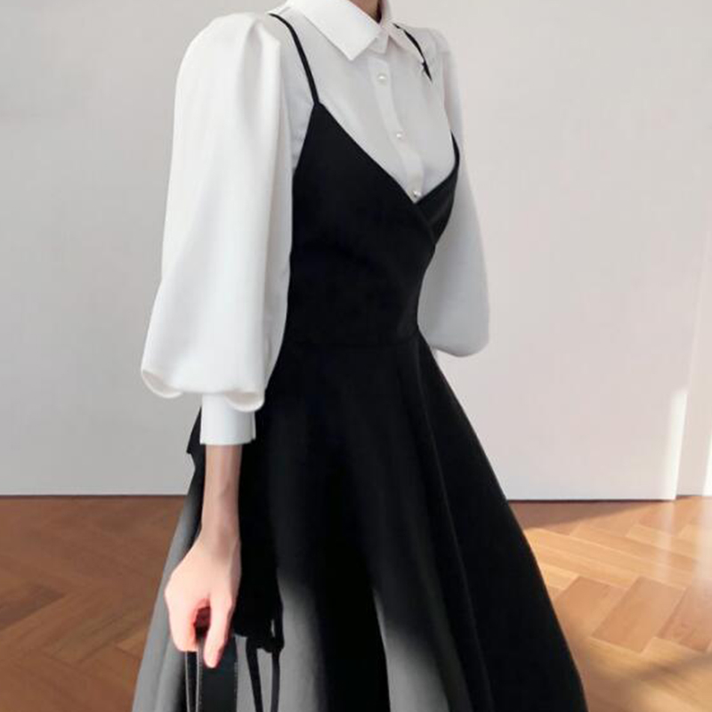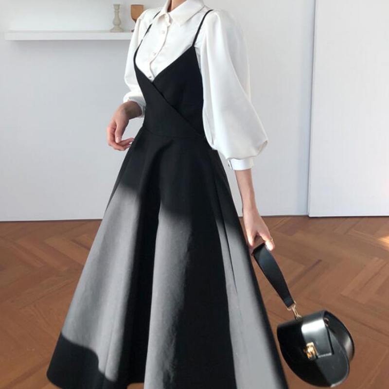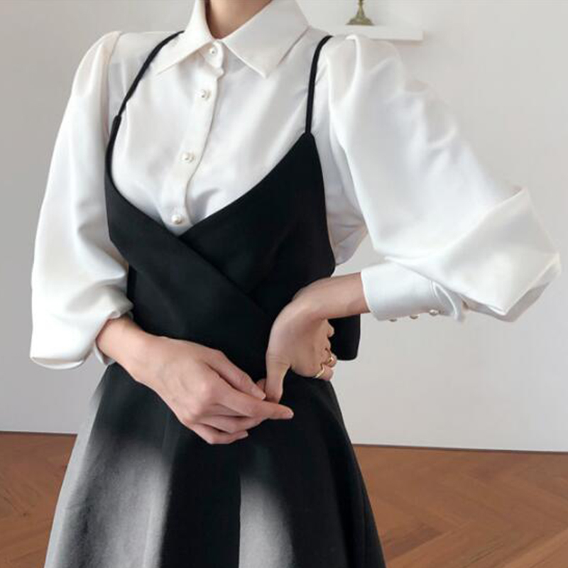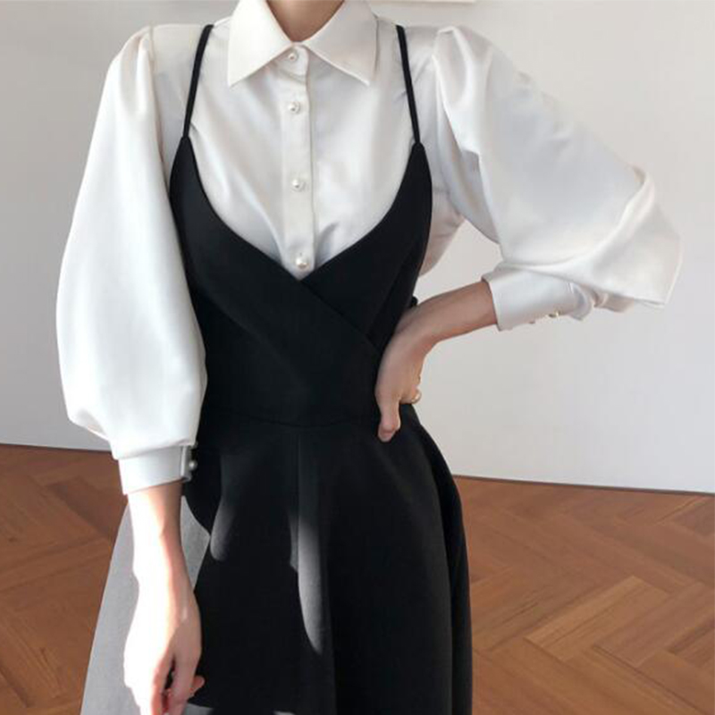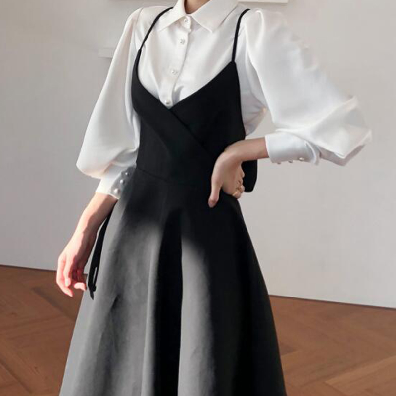 10 reviews for Sister Fara New Spring Dress 2022 Women Single Breasted Lantern Sleeve Shirt Set+Camisole Bow Pleated Solid Dresses
