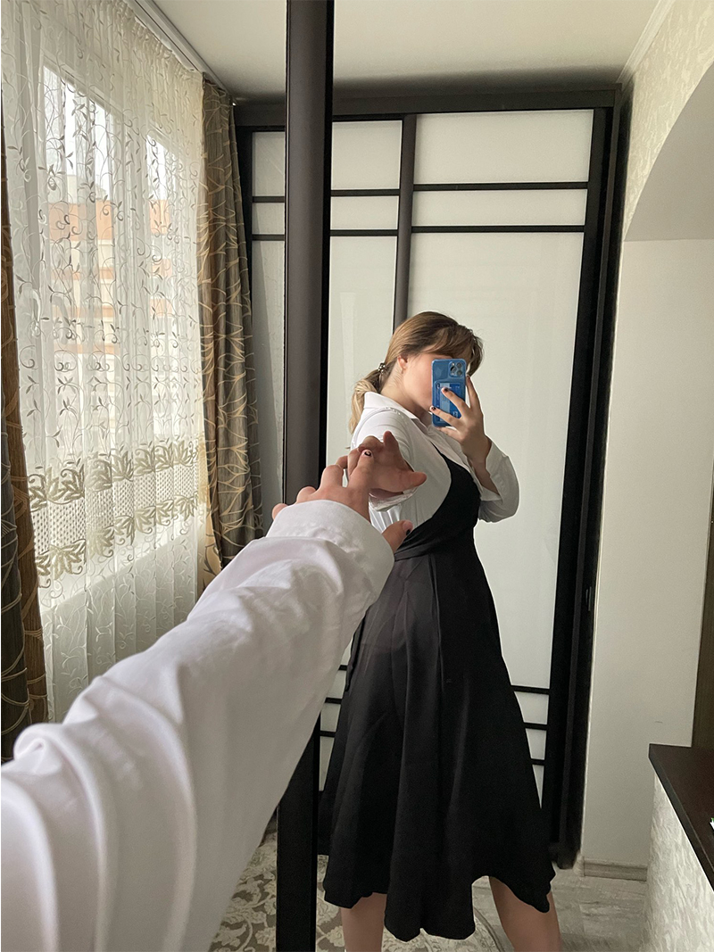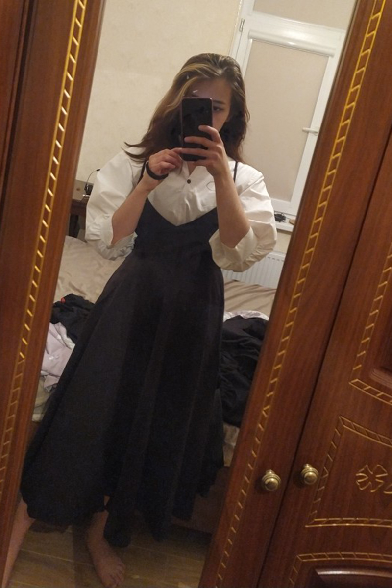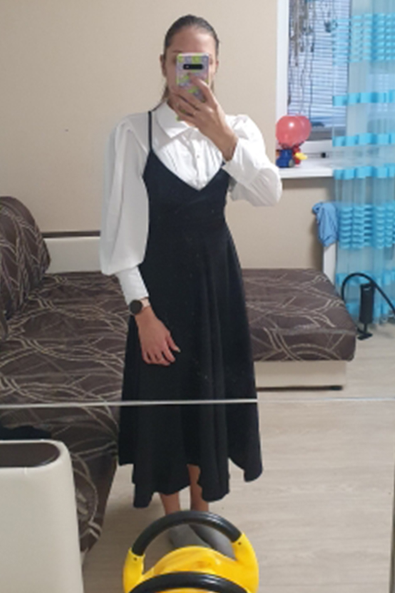 Платье 10/10. Рубашка 5/10 (нитки торчат, пуговицы держатся на соплях). Лучше бы просто платье платье заказала.