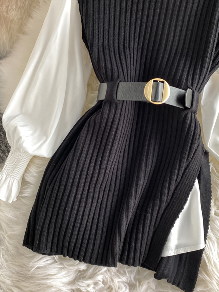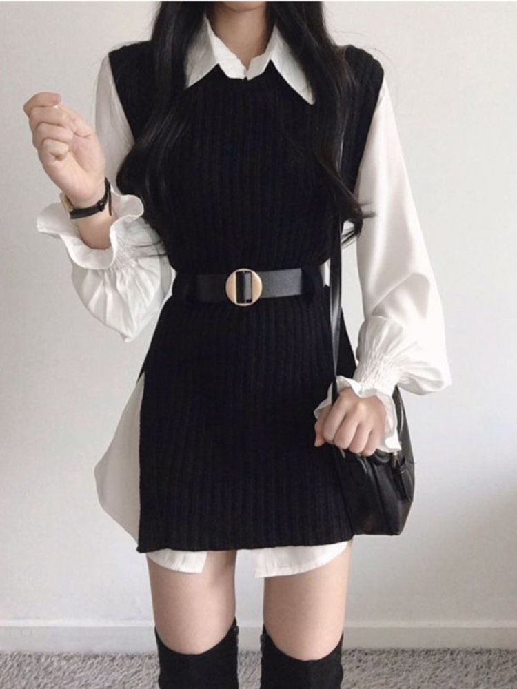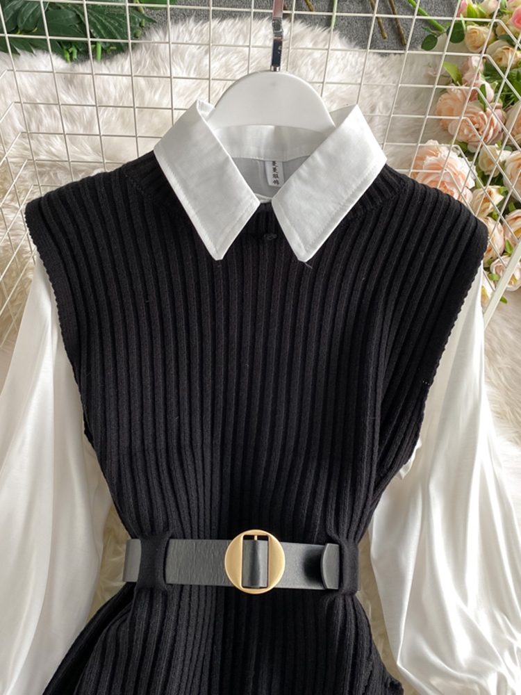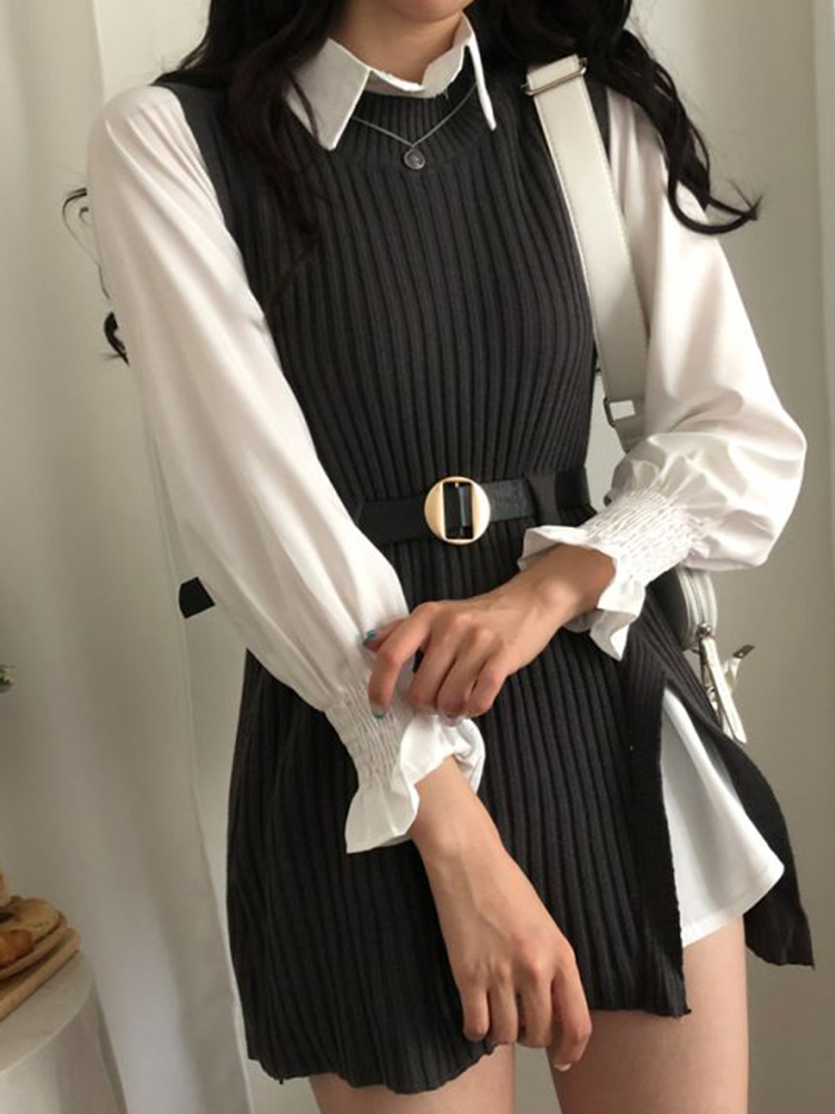 5 reviews for spring autumn women’s lantern sleeve shirt knitted vest two piece sets of College style waistband vest two sets top UK900