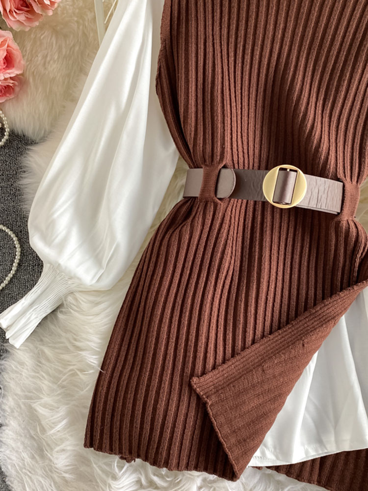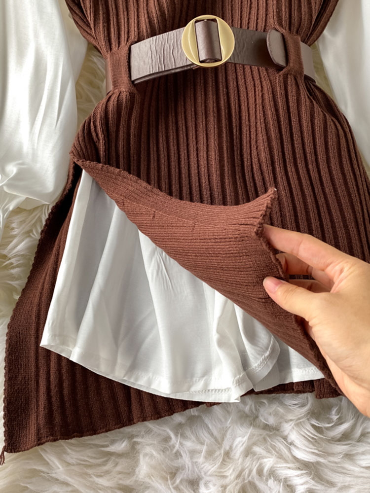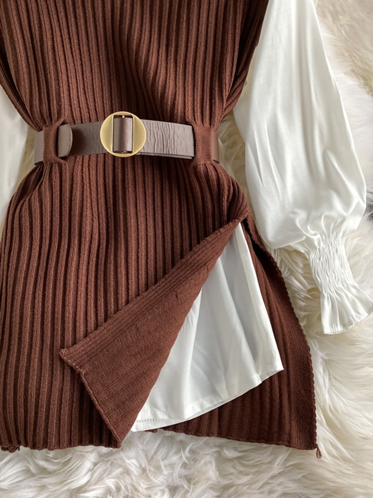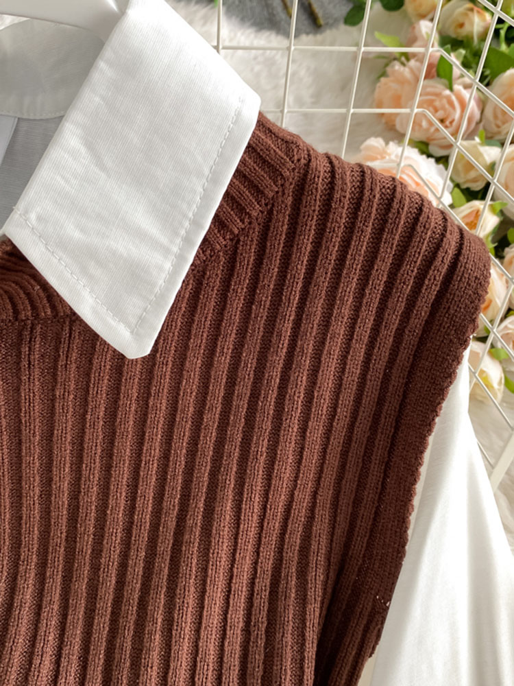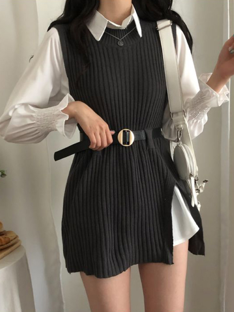 5 reviews for spring autumn women’s lantern sleeve shirt knitted vest two piece sets of College style waistband vest two sets top UK900