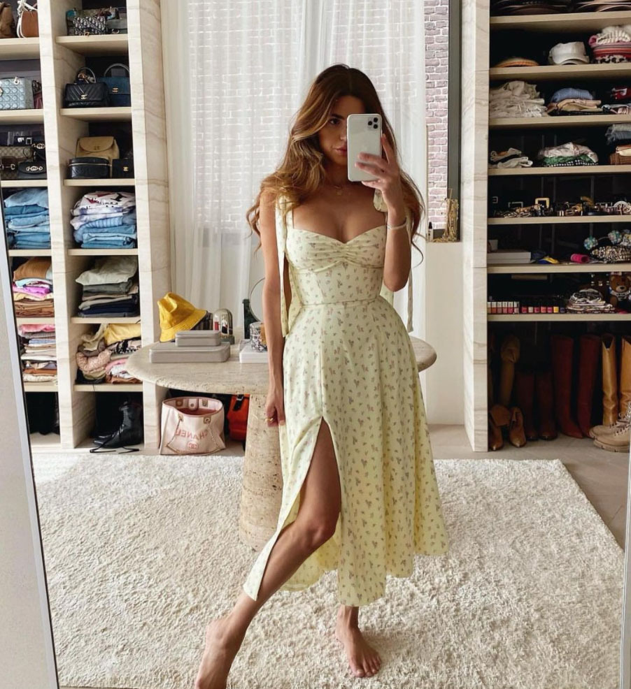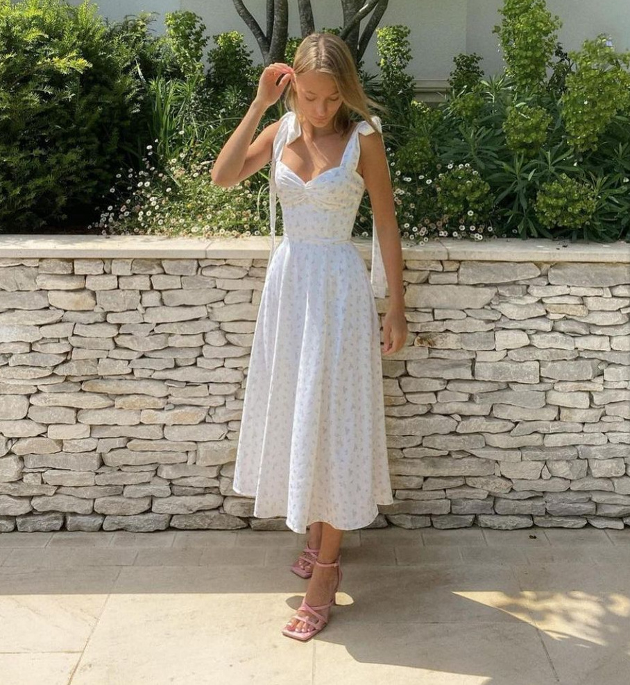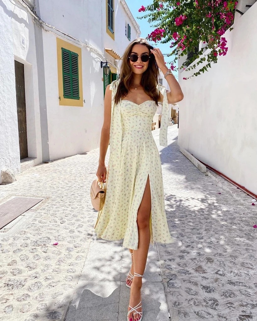 7 reviews for Summer Spring Floral Dress Women’s Sexy Casual Fashion Sundress Midi Slip Backless Pleated Slit White Yellow Lace-up Flowers
