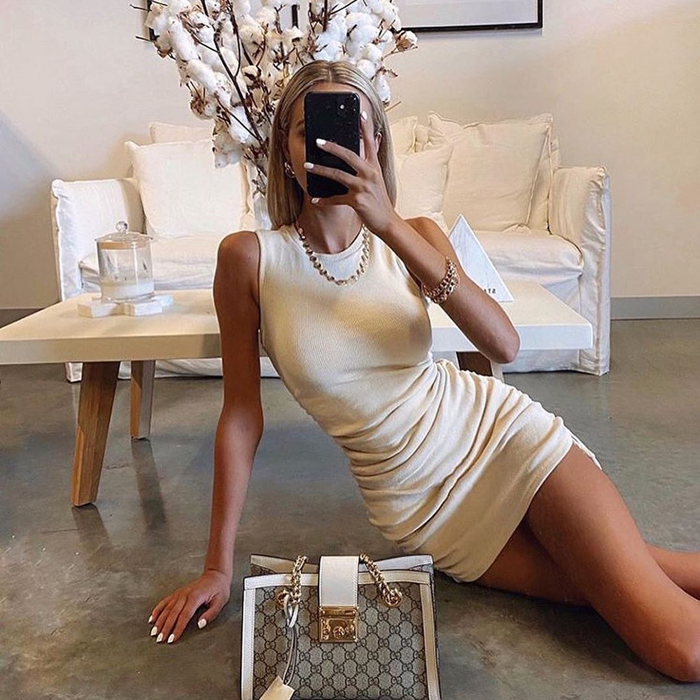 8 reviews for Women Ribbed Elastic Mini Dress Ruched Drawstring Adjustable Length Vestidos Sexy Party O-Neck Summer Bodycon Club Wear